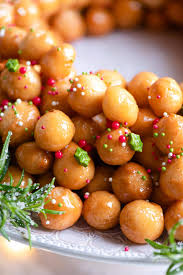 Are you fascinated by naples and campania? Crispy honey balls with a tender heart seasoned with candied fruits or sugar decorations. The size of struffoli is maxed ¾ inch in order to obtain little spheres perfectly fried and crispy. Struffoli gets its name from the greek word strongulos, which means round. Place in the middle of the plate and distribute the honey and struffoli mixture around it.